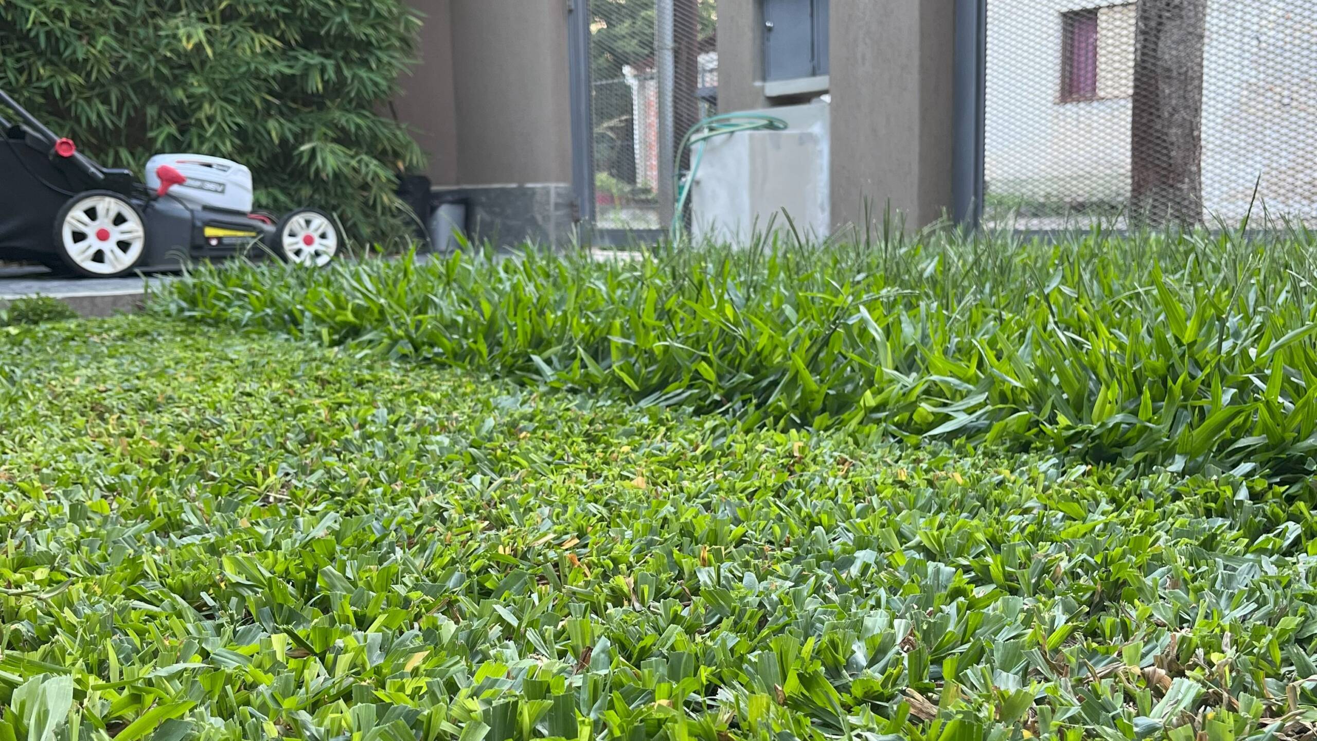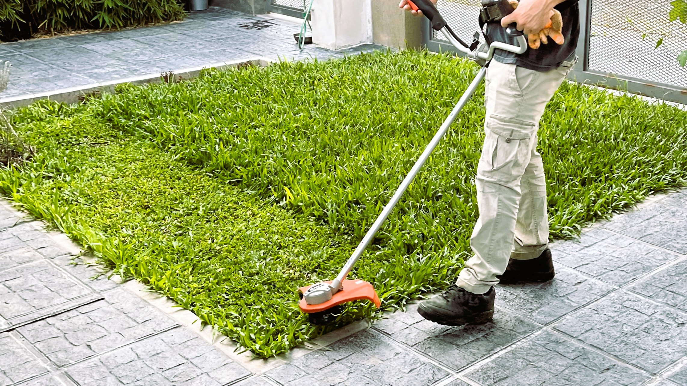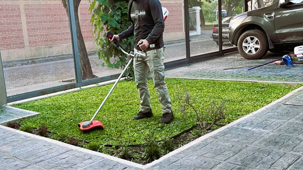 Corte de césped y desmalezado en viviendas e inmuebles comerciales realizado con máquinas eléctricas a batería, sin combustión.
